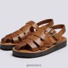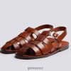 má propletené kožené pásky a jednoduchou koženou podrážku s prošívanými detaily a charakteristickou grensonovou přezkou.