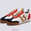 Sneaker 51, inspirovaný běžeckými botami ze 70. let, vyvolává známou nostalgii a zároveň působí svěžím a moderním dojmem. zde v šedém semiši se žlutými, modrými a tmavě modrými detaily sedí na malé bílé klínové mezipodešvi, texturované pryžové špičce a černé pryžové podrážce.